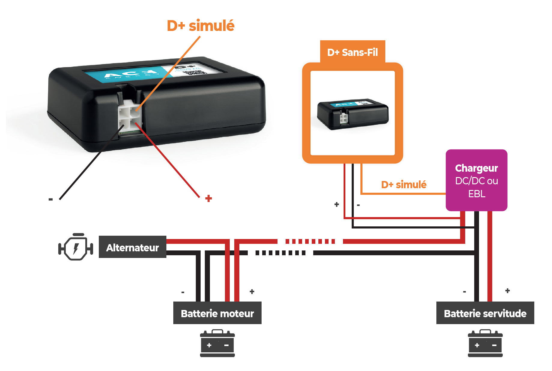 Le Boitier de contrôle sans fils est conçu pour remplacer le signal D+ traditionnel qui indique si le moteur est en marche.