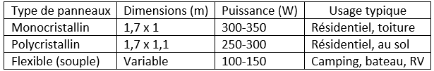 Non, les panneaux sont conçus en modules fixes. Les couper endommagerait les cellules. - Quelle est la meilleure taille pour un camping-car ou un bateau ?